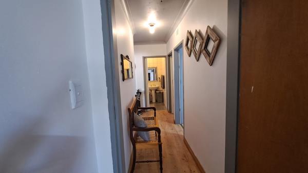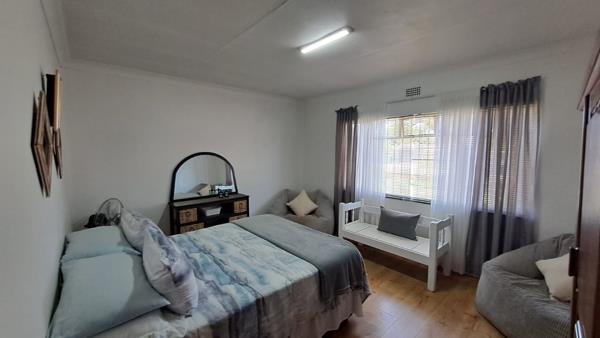 Bedroom 2: Bright and inviting with blinds, curtain rails, built-in cupboards, a double-bed space, and laminated floors.