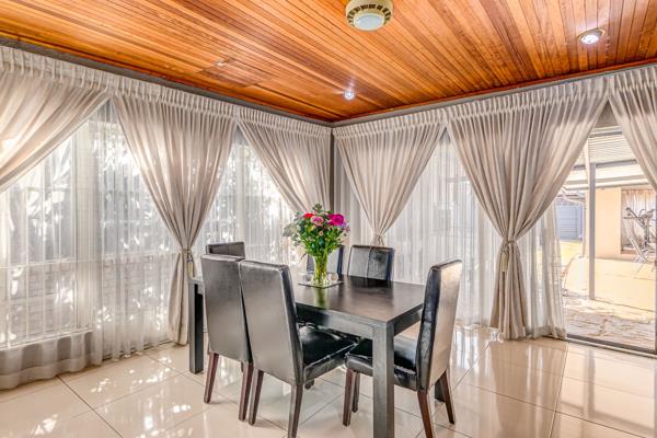This home boasts two spacious living areas, ideal for both relaxing and entertaining. The heart of the home is the large, beautifully designed kitchen, fitted with ample cupboard space and flowing effortlessly into a charming, quaint dining room, perfect for family meals or intimate gatherings.