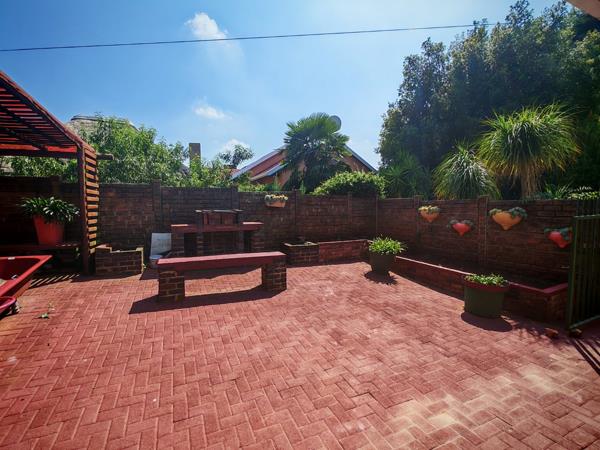 Outside, the property continues to impress with a well-established garden and a dedicated entertainment area complete with a built-in braai ideal for relaxed weekends and social gatherings. The corner position allows for two separate entrances, adding both convenience and future flexibility.