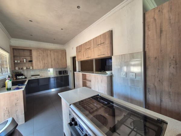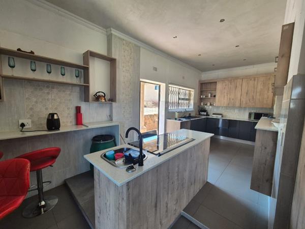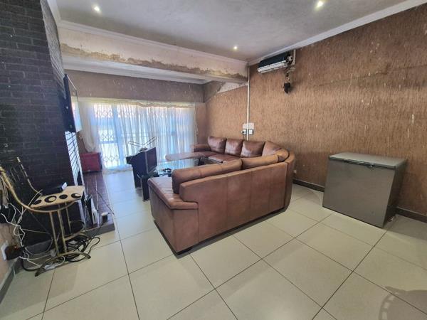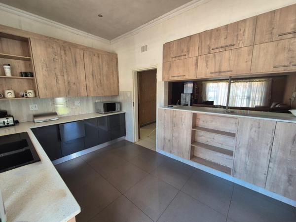 Outdoor amenities include a single garage and a large garden, complemented by paving and a driveway. The property also benefits from a flatlet and outside toilets, adding to its versatility. Security features such as an alarm system, fencing, and burglar bars are in place, ensuring peace of mind. Pets are allowed, making it suitable for animal lovers.