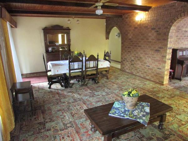 A open plan flatlet with small kitchenette, reception, bedroom and bathroom. Currently in use as an office, if you want to work from home. Enclosed entertainment area with build in braai, fitted cupboards with direct assess to swimming poolnot in use. Paved driveway with double lock up garage and double enclosed carport. Alarm system with security doors. Pre paid water and electricity. Walking distance to all amenities.