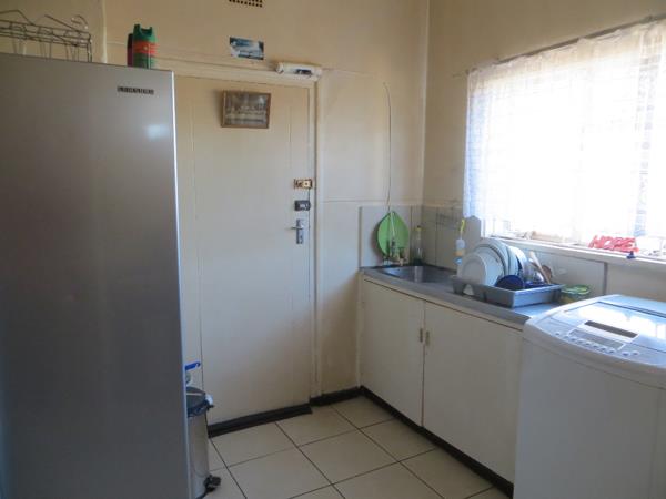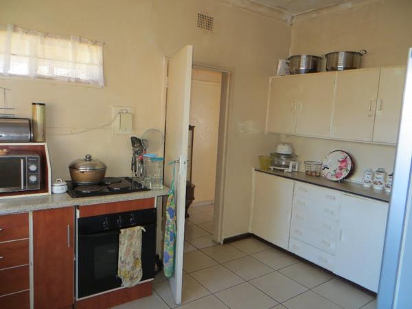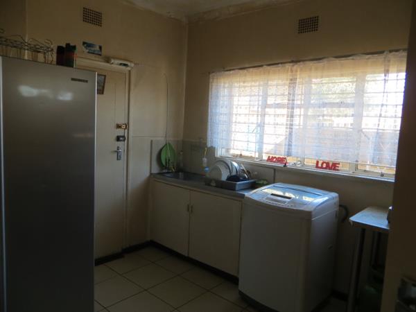 The house consists of open plan lounge, dining room, kitchen with melamine finishes (needs some TLC) Tiled through out the house with build in cupboards in two rooms.