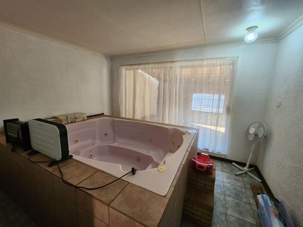 Big lapa entertainment area at the back, where the family can get together. Outside flatlet with full bathroom, room, lounge, and kitchen. The double garage features so much more, even with another toilet, shower, and basin.