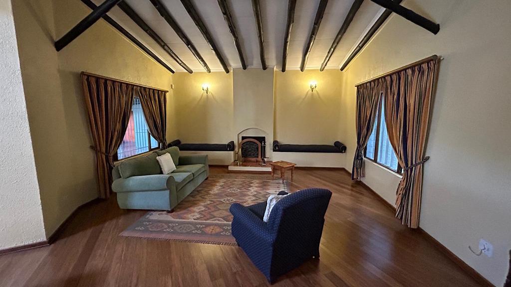 This exquisite family home is a charming small mansion that offers the perfect blend of luxury and comfort. Featuring spacious rooms, a sparkling swimming pool, a built-in braai, and a lapa, its ideal for both entertaining guests and enjoying cozy family gatherings.