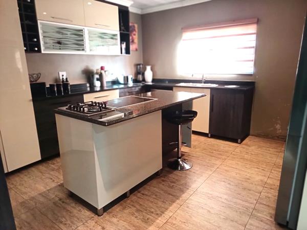 Sophisticated Chic Family Home in a brandnew extension of Carletonville, which is an epitome of space and sleek modern elegance. Consisting of 3 well spaced bedrooms, 2 bathrooms (main en suite) a dressing room, kitchen, dining room and living room. Light quality finishes feature throughout the home, i.e. sliding cupboards doors, lights... The outside part entails a second 3 bedroom house, which is in need of future completion. This second property can be rented ideally or simply the perfect stay over stop for granny or friends. Furtheron, inclusive of a double garage and a stand to the size of 988 square meters. Move and stay in style.