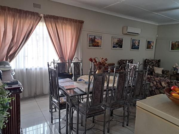 A 3 bedroom family house set on a big stand, close to Carleton Jones High School. Move in ready and very neat. Braai outside for weekend visits. 2 Outside rooms and single garage. 12 Solar Panels. 2 Jojo tanks.