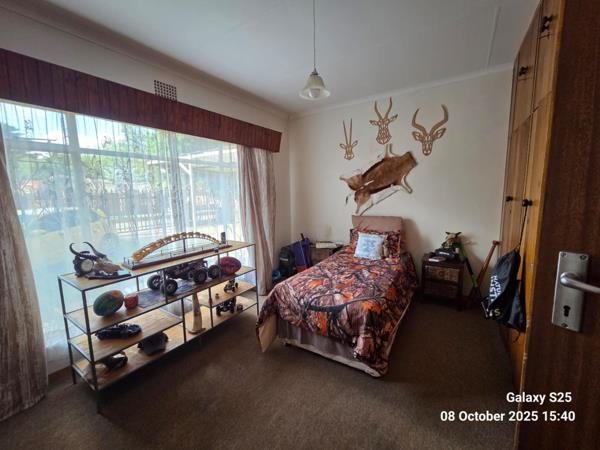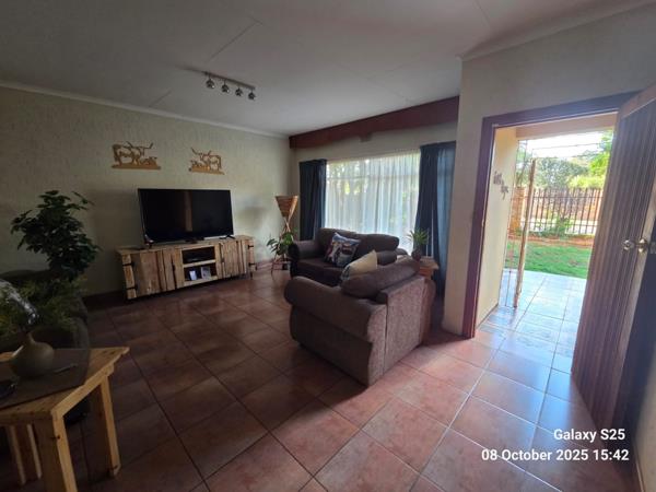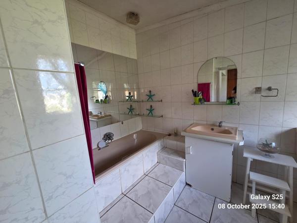 Discover this charming residential property located in the established suburb of Pretoriusrus, Carletonville, South Africa. This single-story home, set on a generous 1034 sqm erf, offers a blend of comfort and practicality for family living. The exterior presents a welcoming kerb appeal with a mix of brick and painted walls, complemented by an established garden featuring mature trees that provide ample shade and privacy. A tiled semi-circular patio area offers an inviting space for outdoor relaxation and entertaining.