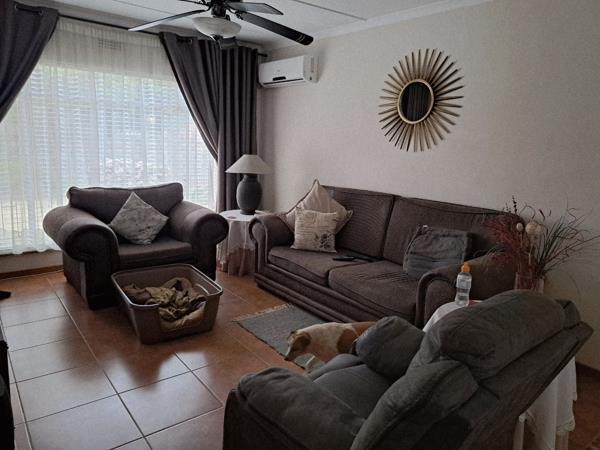 Externally, the property benefits from a secure entrance featuring a security gate, contributing to peace of mind. With two garages, there is secure parking for vehicles, alongside additional space on the generous erf. The property''s layout and features make it a practical choice for those seeking a comfortable and secure residence.