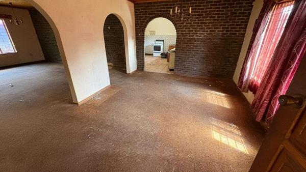 The property also offers double garages, carports, and a generous driveway, making it ideal for families with multiple vehicles or frequent visitors. The entertainment area features a lapa, swimming pool, and built-in braai, forming the heart of the home and offering a great space to enjoy once restored.
