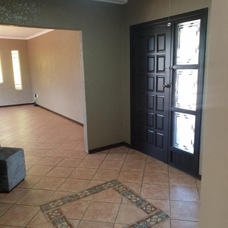 An appealing comfortable home featuring space in abundance, with large windows that flood the interior with natural light. The property has a good layout; Which allows for dual-purpose rooms that do not interfere with the flow between the spaces. ie: described as 3 bedrooms, Lounge,TV Lounge, dining room, study or 3 bedrooms, Lounge,TV lounge,/4th bedroom, dining room, study/5th bedroom. The airy and roomy kitchen and bedrooms are fully fitted with units and built in cupboards. Two functional well organized bathrooms comprising each with basin,toilet,shower and bathtub. A huge potential exists, to create a self-contained secondary dwelling/flatlet utilizing the 2 additional utility rooms and bathroom (with geyzer) Security and privacy features: A new alarm system complete with sensors and beams; With options to monitor the system remotely utilizing your cell phone and or a monitoring service. The property is fully enclosed with a pre-con wall,palisades and gate.