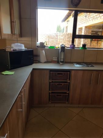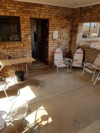 This lovely family home is situated in a good area in Fochville and features 3 Bedrooms, 2 Bathrooms (of which one is En-Suite) and 4 garages. It has a large open plan kitchen, living and dining area. There is a spacious Braai area which has a nice view. It also has a seperate laundry room and a store room. This house has an Alarm system, beams, CCTV and electric fencing. The house is facebrick which makes it low maintenance and the stand is 1213 square meters. Prepaid electricity and Solar Geyser. To book a viewing appointment please contact Riana [removed]