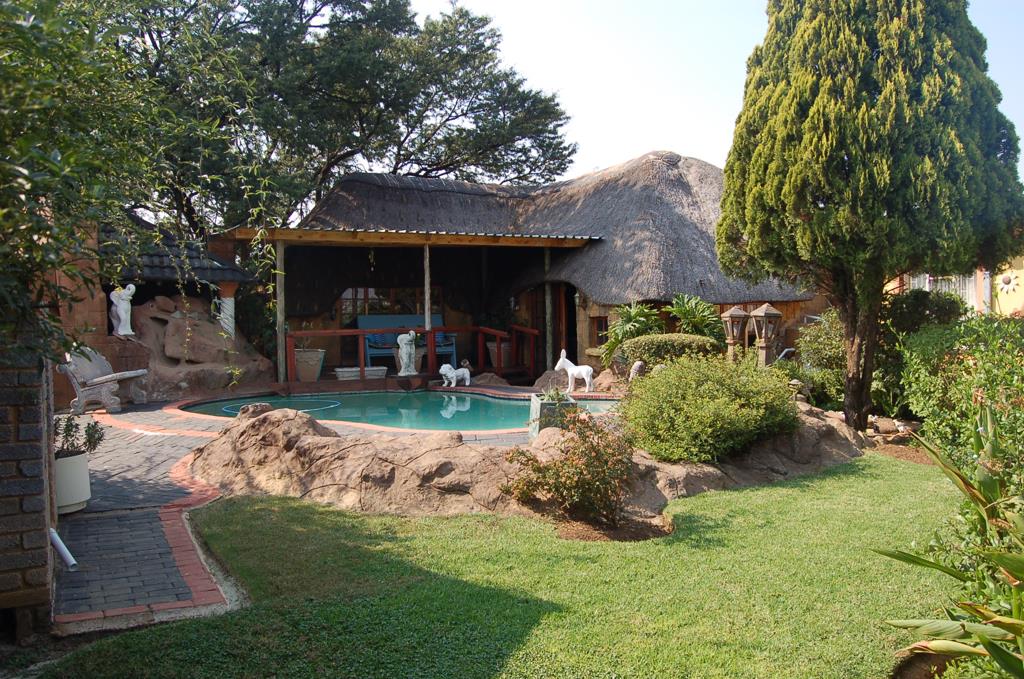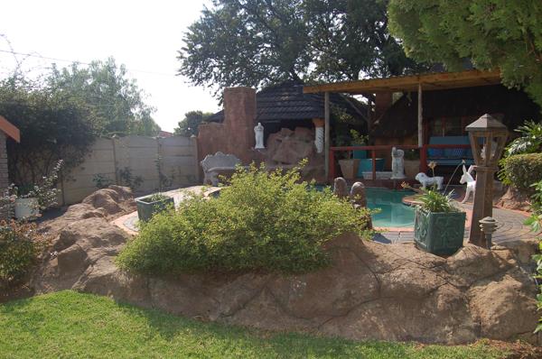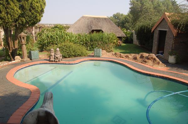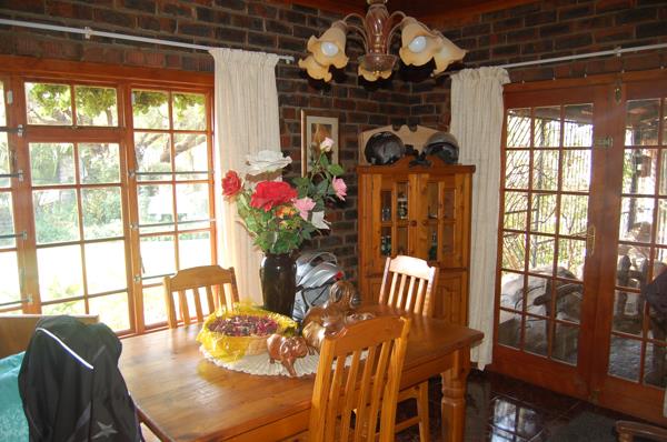 Enclosing entertainment area with built in braai. Sparkling swimming pool and large green yard for those green fingers.