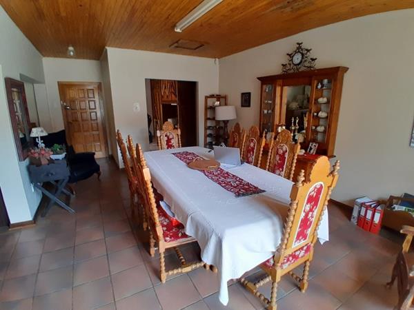The heart of this home lies in its open-concept living and dining areas that seamlessly connect to the lapa, your ultimate entertainment haven. Picture yourself hosting gatherings in style with a custom bar and built-in braai, where the spacious layout accommodates both a lounge suite and dining ensemble. The lapa opens up to the crystal blue swimming pool and a beautifully landscaped garden with a borehole.