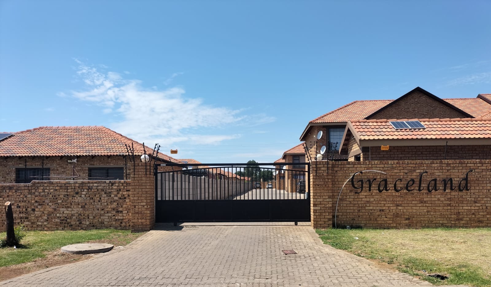 Discover secure and comfortable living in this well-appointed 1-bedroom unit, ideally situated within the Graceland complex in Fochville. The property immediately presents a sense of security with a gated entrance, brick walls, and electric fencing, ensuring peace of mind. A paved driveway leads to the residences, which feature durable brick construction and classic tiled roofs, contributing to a neat and established kerb appeal.