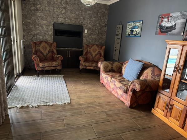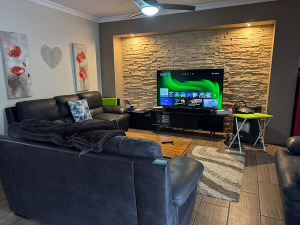 Open plan Kitchen, living room, dining room, and entertainment area (with built-in braai).