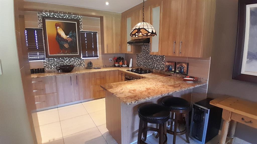 Step outside onto the patio where youll find a built-in braai, ideal for outdoor gatherings. The double motorized garage offers ample space, and smash-and-grab windows provide added security. Two storage rooms provide extra space for all your needs.