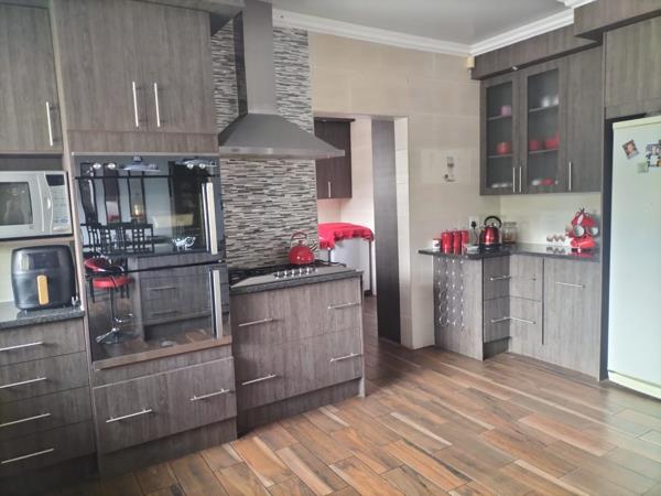 This stunning 4-bedroom home is a perfect blend of luxury, comfort, and modern living, offering ample space and high-end features that make it a dream home for families. The open-plan kitchen, equipped with a gas stove, seamlessly flows into the dining, sitting, and TV rooms, creating an ideal space for family gatherings and entertaining. The highlight of this property is its incredible bar, braai, and swimming pool area, providing the perfect environment for making lasting memories with loved ones.
