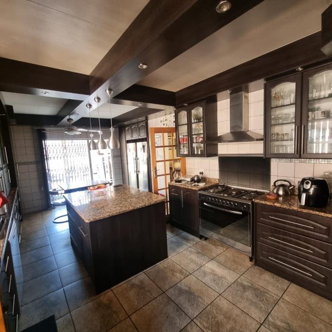 Step outside to a generous entertainment area with a built-in braai and covered patio overlooking a sparkling swimming poolperfect for hosting and relaxing. The home also includes a separate servants quarters/bachelor flat, ideal for extended family or rental income.