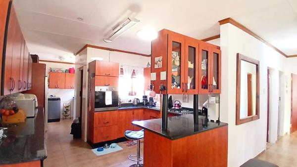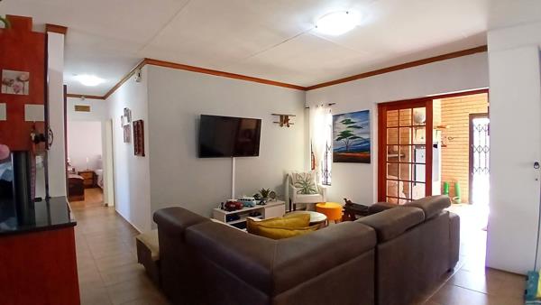 Enjoy open-plan living with a kitchen and separate scullery/laundry, seamlessly flowing into the dining and lounge areas. From the lounge, sliding doors open onto a covered braai area, perfect for entertaining family and friends.