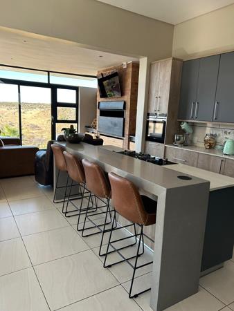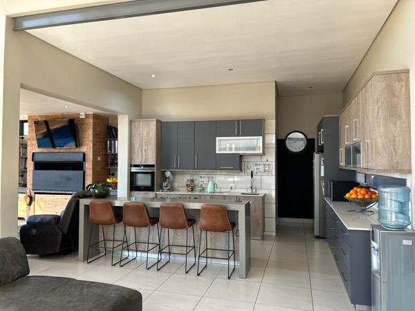 Discover your Designer Dream Home of 300 square meters in this split levelled airy beyond State of the Art Residence, accompanied by an abundance of natural light adding to the beautiful alluring flow, which has to offer all and everything the heart desires. Starting off with 4 bedrooms, 2 bathrooms, study, open plan living room & kitchen, scullery, indoor braai room, upper level dining room & entertainment room. A remarkable attributing asset, is a loft room. Furtheron, automated double garaged plus double carport. To round off and add to all of the above, a magnificent heated pool invites you together with the most spectacular surround views imaginable. You can live the unblemished lifestyle with all the most essential, beneficial bonus features, which include a strong borehole, 12 solar panels with 2x 5 kva invertors, excellent security (also per app). Boasting an erf size of 2900 square meters. This street is unquestionably one of a kind.