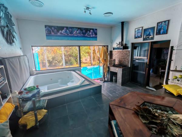 With a total of 4.5 bathrooms, the property ensures ample convenience and privacy for both residents and guests. Designed for both entertainment and leisure, it boasts a dedicated outdoor entertainment area with a built-in pizza oven, as well as a luxurious indoor jacuzzi room equipped with a built-in gas braai and extractor fanan inviting space for social gatherings or tranquil evenings. Just beyond the jacuzzi room lies a large 150,000-liter swimming pool, perfect for enjoying warm summer days.