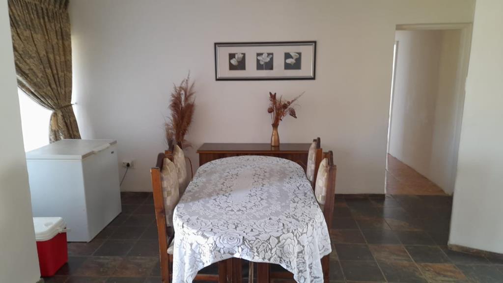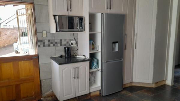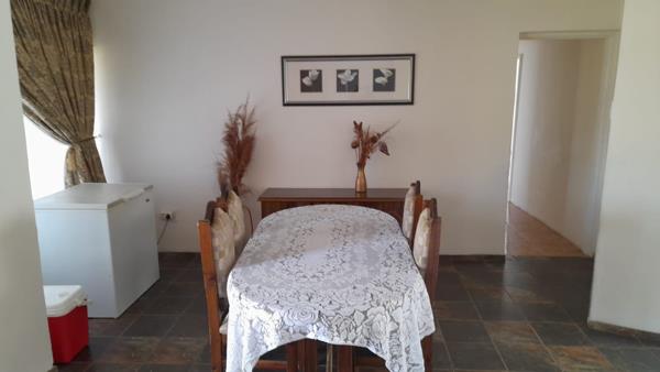 consist of 4 bedrooms, 2,5 bathrooms(1 En-suite), Big modern kitchen , dining area and living area with a Patio. A built-in braai with a Bachelor Flat, a beautiful well established garden. 2 x garages. The house has pre-paid electricity and a solar system with 4 panels.
