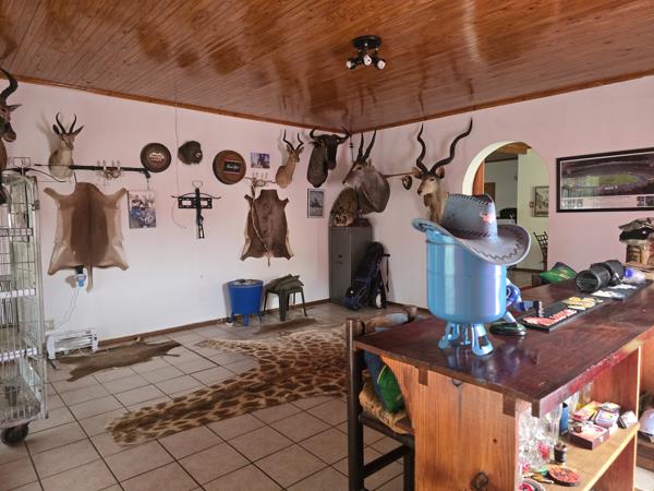 This exceptional property is situated on a generous 991sqm stand in the heart of Oberholzer, Carletonville. The main house boasts a welcoming entrance leading to a spacious lounge, an open-plan TV and dining area, and a modern kitchen equipped with built-in cupboards, a stove, and a double sink. The home offers four bedrooms, including a luxurious main bedroom with a walk-in closet, ensuite bathroom (featuring a bathtub, shower, water closet, bidet, double wash basins, and sauna), and direct access to the swimming pool area. The bedrooms are fitted with BIC, while three bathrooms ensure ample convenience for family and guests. Additional features include a study room with its own exit door and a dedicated bar/entertainment room, perfect for hosting and relaxing.