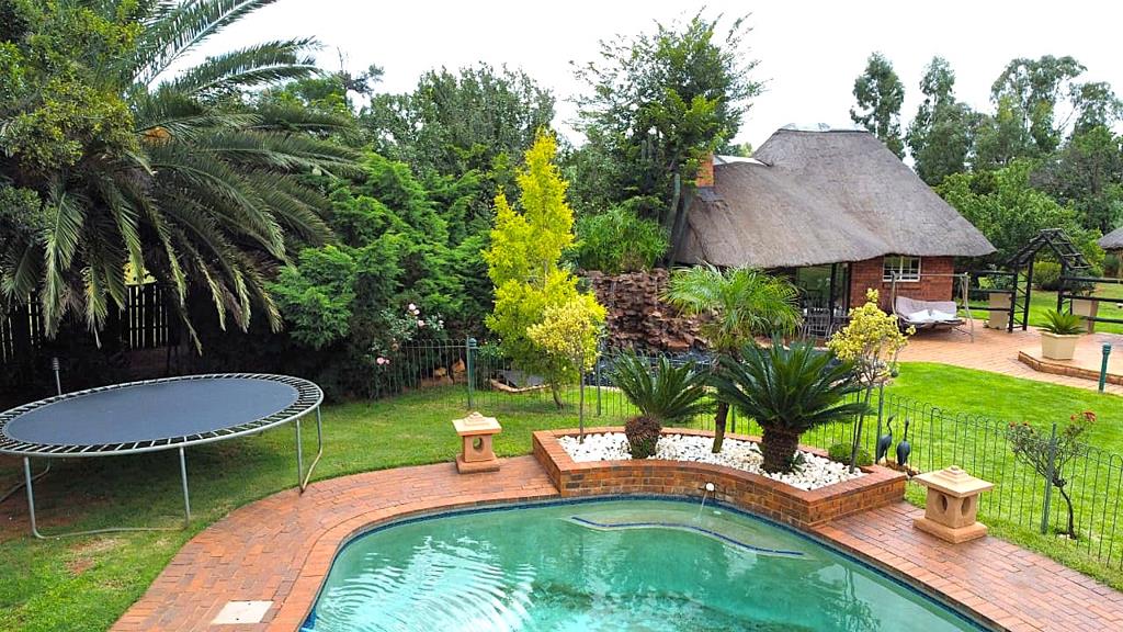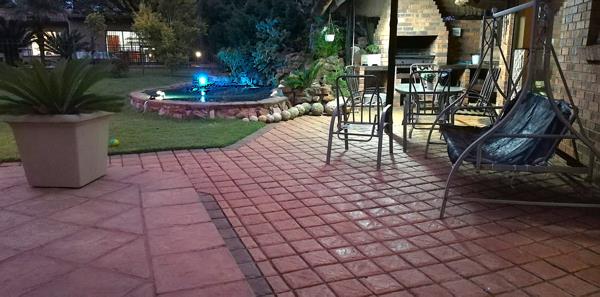 The sparkling pool provides a refreshing oasis for relaxation and recreation. A serene koi pond, alive with graceful fish, adds a touch of tranquil beauty to the landscape. The heart of outdoor entertainment is the spacious lapa, featuring a luxurious jacuzzi comfortably seating eightperfect for intimate gatherings or serene evenings under the stars.
