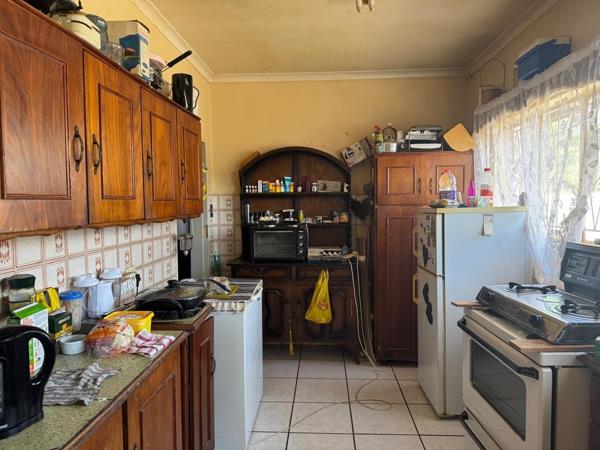 Adding to its appeal, the passage, kitchen, and lounge are tiled, while the bathrooms are finished with novilon, making upkeep easier. A patio with a built-in braai and bar creates the perfect setting for entertaining guests or enjoying family time outdoors. Conveniently located within walking distance to both a high school and a primary school, this home is an excellent choice for families. With some renovation and personal touches, it offers strong investment potential and the chance to transform it into a comfortable, modern home tailored to your lifestyle.