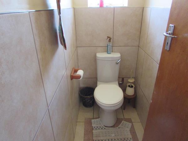 Outside offers a covered patio utilized as an entertainment area with a lovely view over the garden. Laundry and storeroom. Double lock up garage. Carport for 1 car. Pre paid water. Burglar bars with a Alarm system. Property fenced.