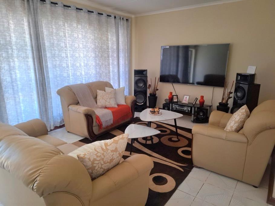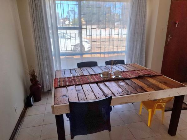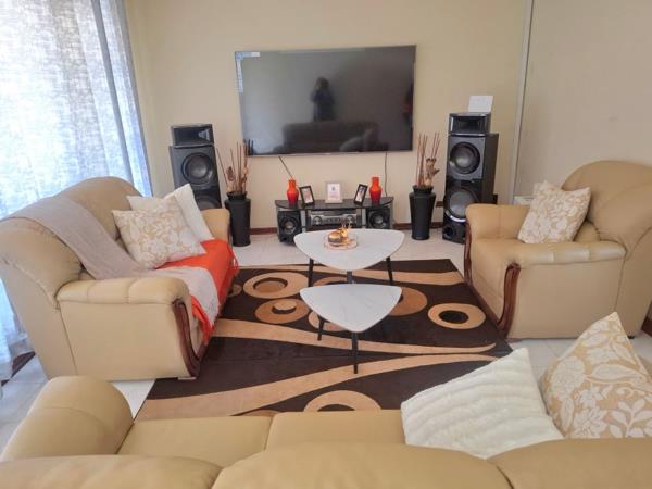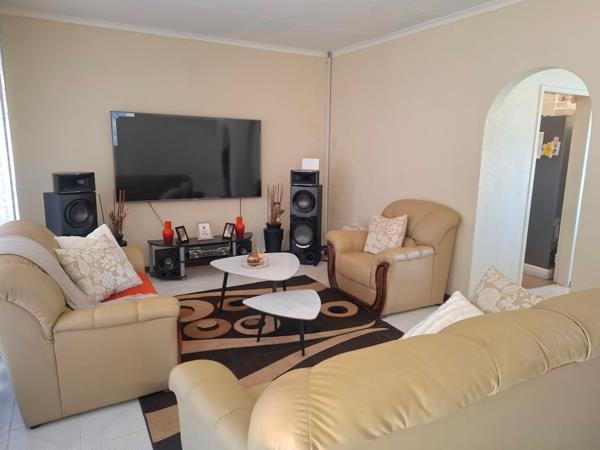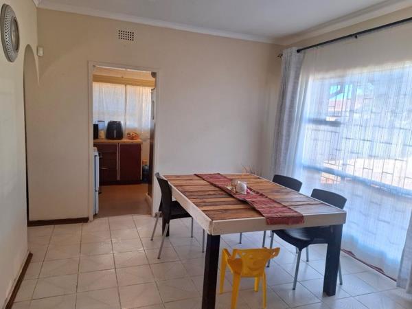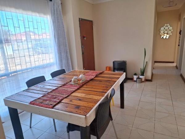 The property boasts 2 receptions, one of which flows seamlessly onto a under roof patio overlooking the tranquil backyard garden - ideal for outdoor living and entertainment. The fitted kitchen is equipped with a stove, cupboard space, laundry fittings and making meal prep easy with direct access to the dining area. 3 Well sized bedrooms with build in cupboards and carpeted floors. 2 Bathrooms one main on suite with bath, basin and toilet.