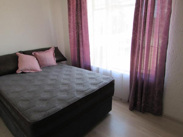 Consist of an open plan reception area neatly tiled, leading to a balcony with build in braai and a lovely view over the garden area. A well sized kitchen with packing space, breakfast nook, hob, under counter oven and granite tops. 2 Spacious bedrooms with build in cupboards and laminated floors. 1 Full bathroom with shower, bath, basin and toilet.