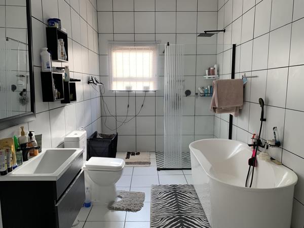 Outside is a large flower garden with fruit trees, vegetable garden and a Jacuzzi. There is a fully functional one bedroom flatlet with own solar geyser. The domestic roomstore room also has it''s own solar geyser. The home is close to a Primary school, a Pre School and a Clinic.