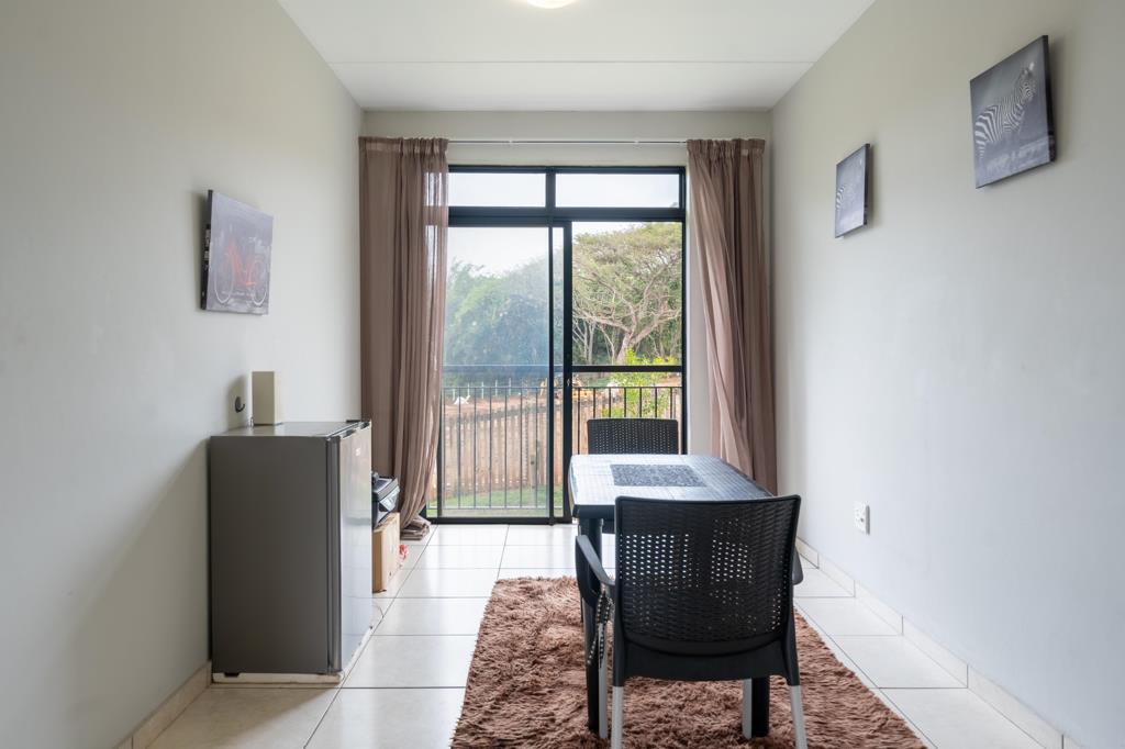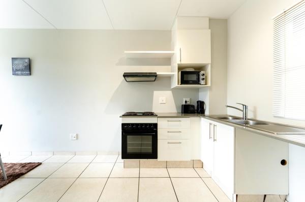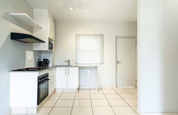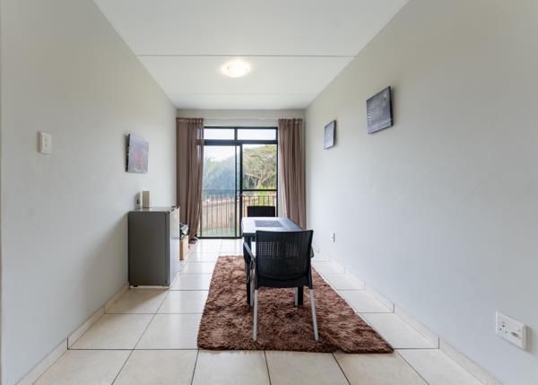 One bedroom apartment in Ballito Groves. The living space of this pet friendly apartment comprises of an open plan kitchen and lounge with a sliding door, indoor balcony. One well sized bedroom with built in cupboards is separate from the bathroom, fitted with a shower.