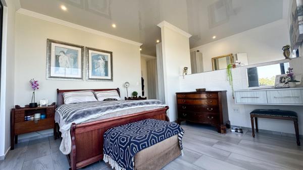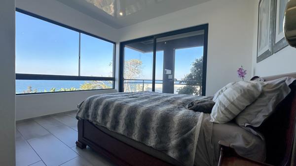 Experience luxury coastal living at its finest in this exquisite family home nestled in the heart of Ballito. This expansive residence spans two levels, offering unparalleled comfort and style with breathtaking ocean views. Upstairs, the heart of the home boasts a modern kitchen, seamlessly integrated with two lounges and a sophisticated bar area, perfect for entertaining guests or relaxing with family. The lounges open onto spacious balconies, where you can unwind and soak in the serene vistas, with one balcony directly accessible from the luxurious main bedroom. Each of the three upstairs bedrooms is a sanctuary of comfort, featuring private en-suite bathrooms for ultimate convenience and privacy.