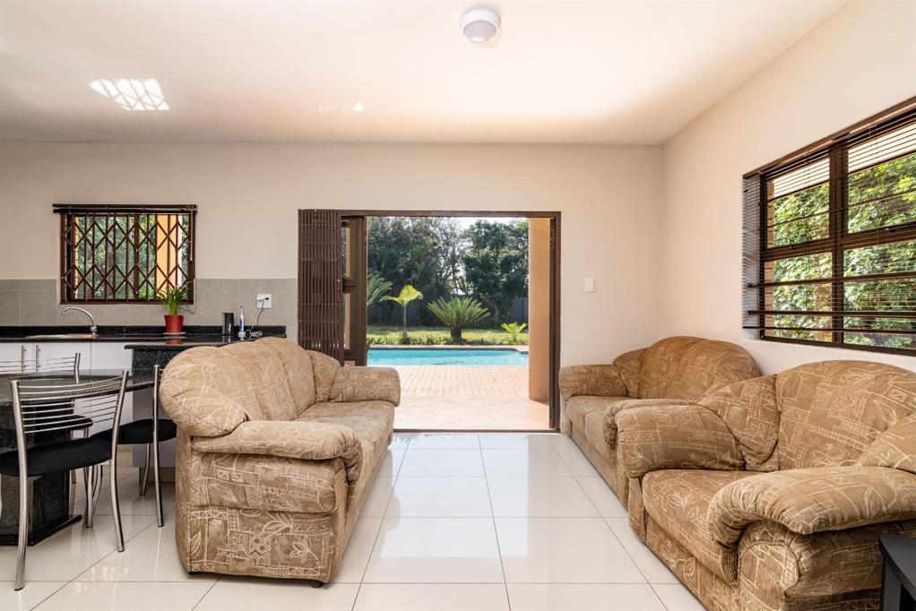 The ground level holds a chic kitchen and an integrated casual dining and lounge that leads out onto the covered patio and pool area. The kitchen also has a separate scullery and access to a courtyard area. There is also an additional dining room and second lounge area together with a guest bedroom (fifth bedroom or office) with a full bathroom situated on this level.