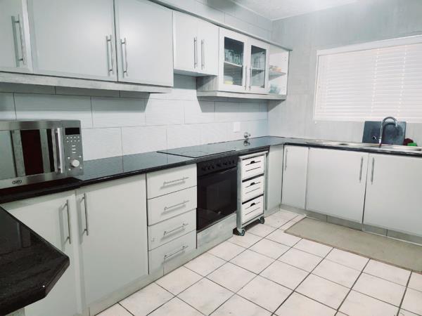 An open-plan kitchen, lounge and dining area that opens up onto a gorgeous covered patio with a partial sea view. 3 large bedrooms with ample cupboard space. The main bedroom has a modern and spacious en-suite bathroom and the very spacious family bathroom has a bath and shower.