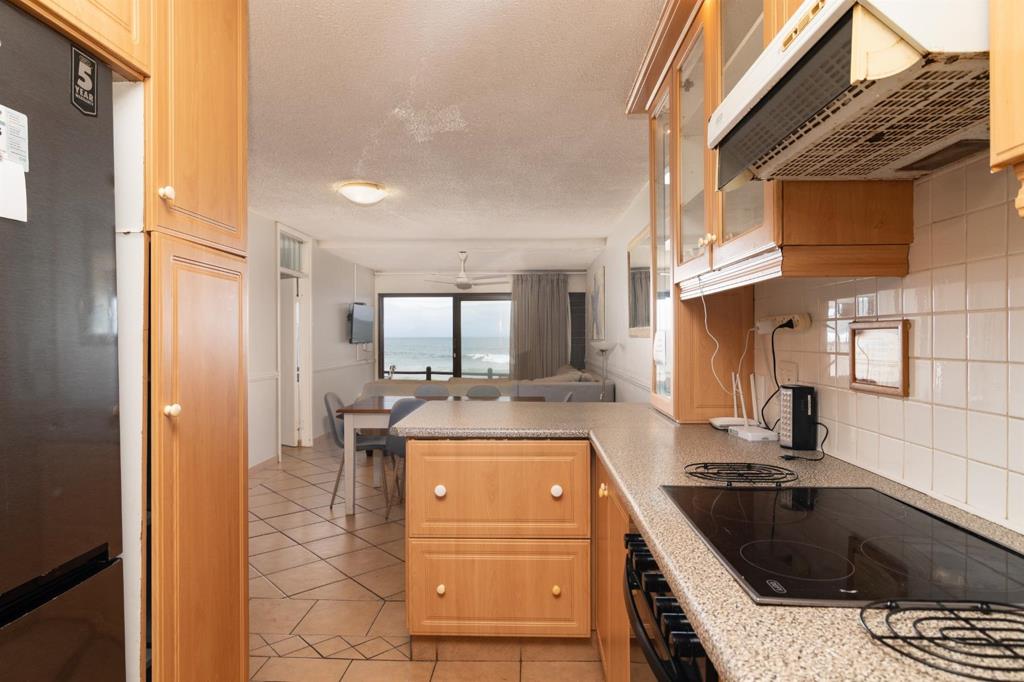 The unit includes a conveniently located covered parking bay, a wind-sheltered pool area, and an on-site takeaway kiosk for effortless seaside living.