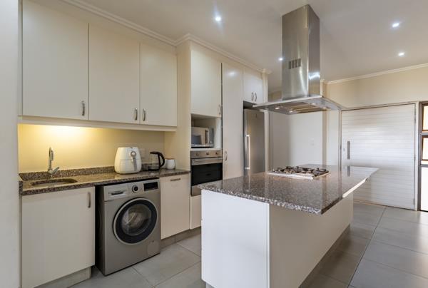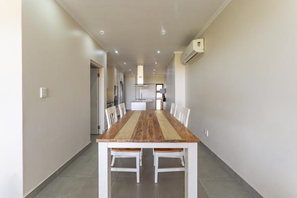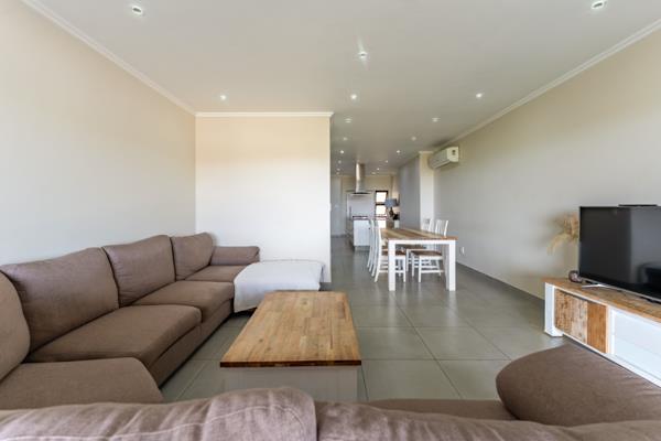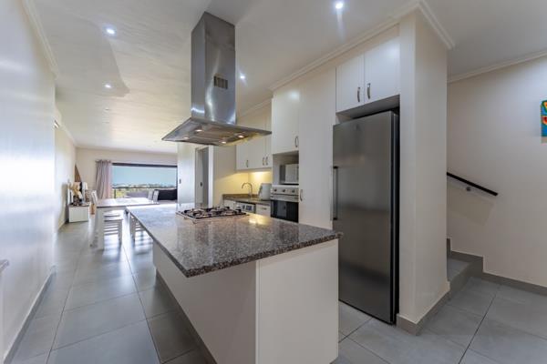 DUAL MANDATE | Modern two-bedroom apartment with elevated views over Brettenwood Coastal Estate down to the ocean. On entrance this unit features an open-plan kitchen, dining, and lounge area opening out onto a covered balcony with a built-in braai. The kitchen is fitted with a centre island, gas stove and extractor. The guest bathroom sits on this level.