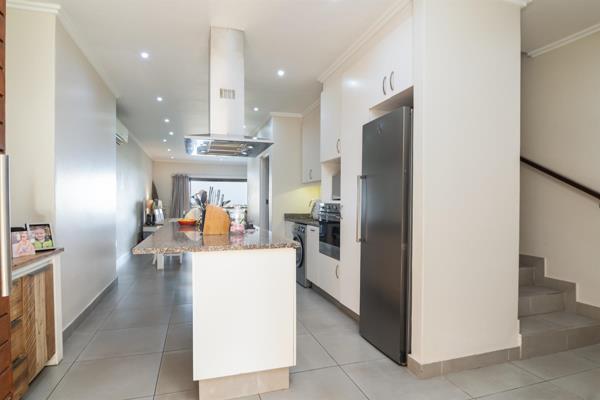 The double-storey unit offers an easy, open-plan layout ideal for relaxed coastal living. Entry is into a light filled stylish kitchen which features a central island, gas hob with extractor fan and ample cabinetryflowing effortlessly into the dining and lounge areas. These living areas extend out through large glass doors onto a generous, covered balcony complete with a built-in braai, ideal for outdoor entertaining.