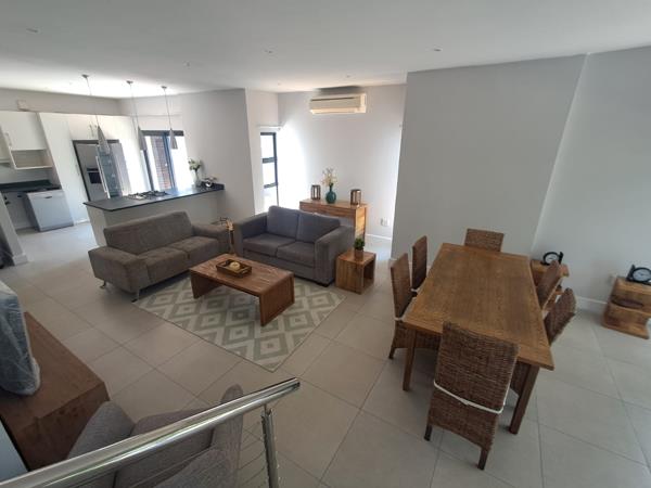 NO TRANSFER DUTY. Situated in the serene and secure Brettenwood Coastal Estate, this beautifully appointed double-storey townhouse offers modern comfort, energy efficiency, and tranquil estate living.