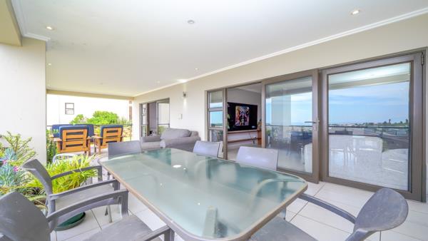 Designed for effortless contemporary living, the home welcomes you into a bright, open-plan space where a sleek kitchen with a central island, gas hob, and ample storage flows naturally into the dining and lounge areas. Expansive glass doors open onto a generous, covered balcony complete with a built-in braai perfect for soaking in the views and enjoying relaxed outdoor gatherings.