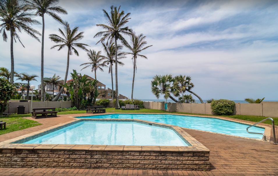 Outside, enjoy the fantastic communal pool area with a large swimming pool and a smaller splash pool, all set within lush tropical gardens perfect for sunny afternoons and relaxing weekends. A communal braai area and ample parking bays add convenience to this idyllic coastal escape.