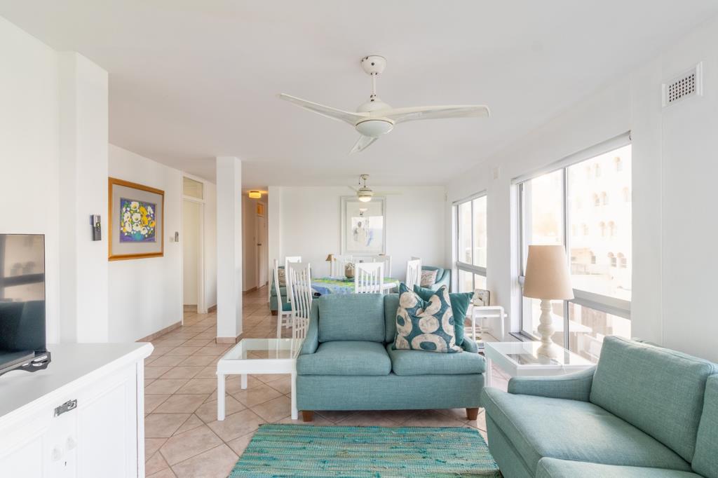 Inside, the apartment boasts a light-filled, open-plan layout with generous living and dining areas flowing seamlessly onto a large balcony the perfect space for entertaining or simply soaking in the uninterrupted sea views. The neat, fully equipped kitchen connects effortlessly to the living spaces, ideal for easy everyday living.
