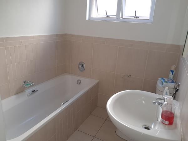 Inside, you''ll find two generously sized bedrooms with ample built-in cupboards, including a master bedroom with its own en-suite bathroom. The apartment features fully tiled floors throughout for easy cleaning, a fitted kitchen complete with stove, extractor, and oven, as well as prepaid electricity and water meters for added convenience.