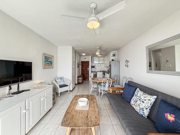 The apartments open-plan layout maximizes both space and the spectacular views. The kitchen flows effortlessly into the lounge and out to the private balcony, where you can soak in uninterrupted ocean vistas while enjoying a sundowner or a meal with friends. From the balcony, youll also enjoy a view of the beautiful and large communal swimming pool with some of the nicest, more private little braai areas, adding to the relaxed coastal lifestyle.