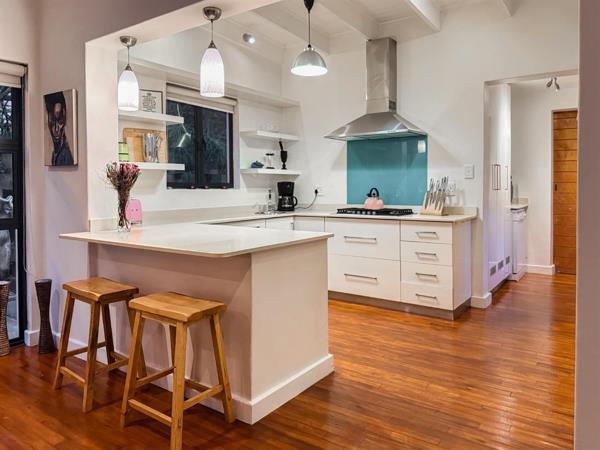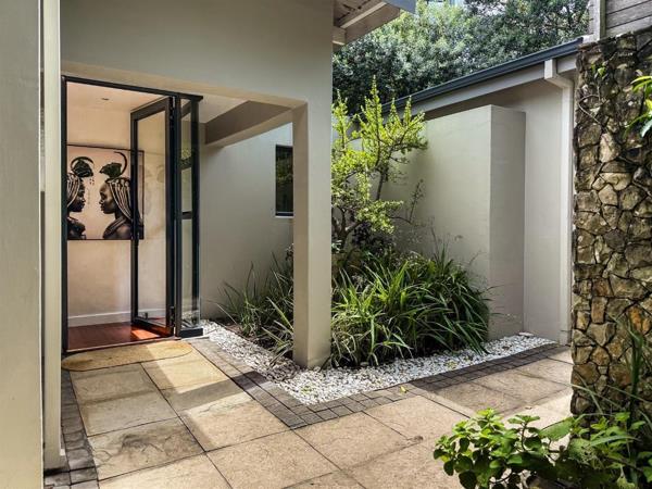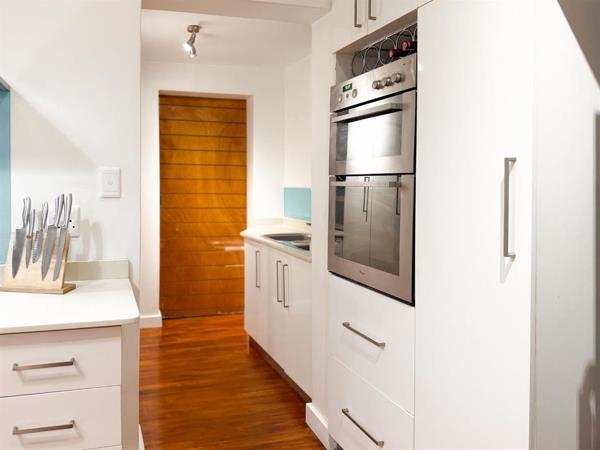 The main bedroom opens to the garden and features a stylish full en suite and ample cupboards, while the remaining two bedrooms share a contemporary shower bathroom.