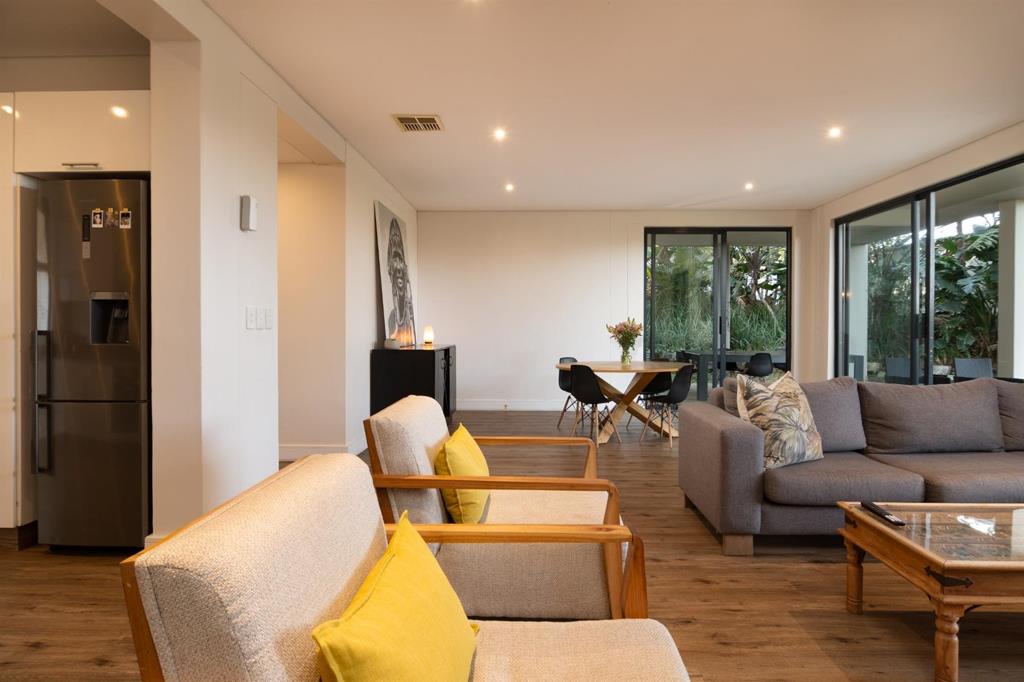 The integrated lounge and dining room each open onto the spacious covered verandah through two separate sliding glass doors and all these spaces look onto tranquil beautiful forest surrounds that ensures tranquillity is an integral part of everyday living in this home. The large sized kitchen enjoys a definite positioning with its own dedicated space and has a practical design that allows good circulation and easy access to the various countertops, ample cabinetry and major appliances.