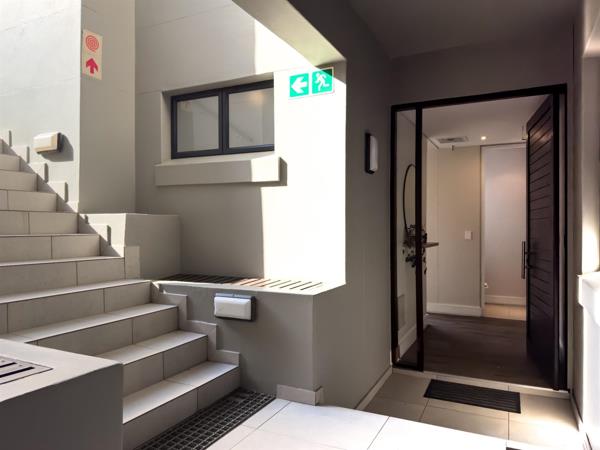 space. Bedroom two also has outdoor access and shares a bathroom with bedroom three. There is also a sleek WC near the entrance.