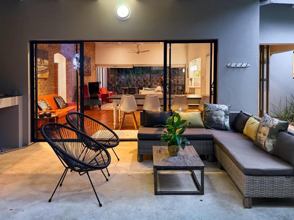 The open plan, well fitted kitchen services the lounge and dining room with patios off both sides creating the perfect home for entertaining. High ceilings with exposed trusses , neutral tones with exposed raw brick add to the attention to detail in this interactive floor plan.